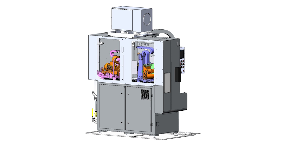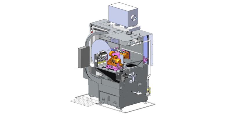 Оператор устанавливает пилу на шпиндель. Далее с помощью трех сервоприводов дисковая пила автоматически устанавливается в положение заточки. Позиционирование контролируется лазером и механическим датчиком.