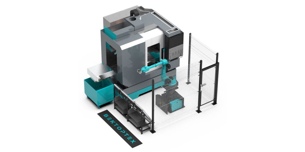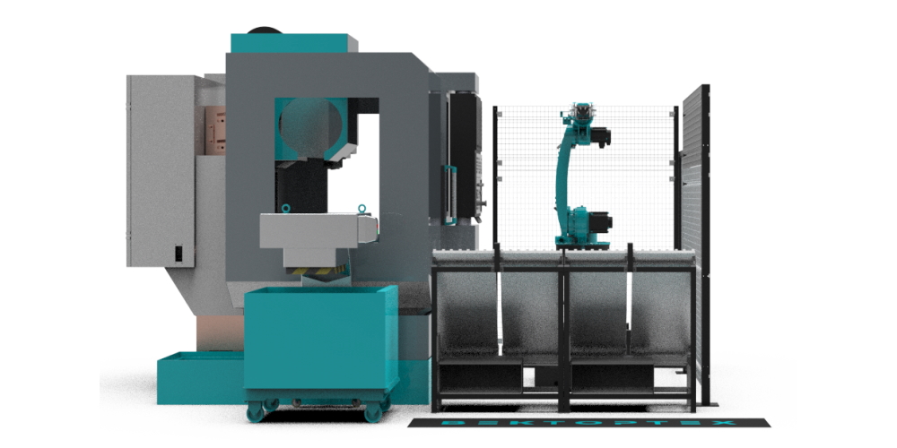 Данный комплекс создан для загрузки выгрузка фрезерного модуля. Входящий в состав наклонный накопитель позволяет унифицировать заготовки. Комплекс оборудован всеми необходимым средствами безопасности. Статус работы оборудования показан на светозвуковой колонне. При необходимости проверки инструмента, или дозагрузки накопителя подается звуковой сигнал, информирующий оператора.