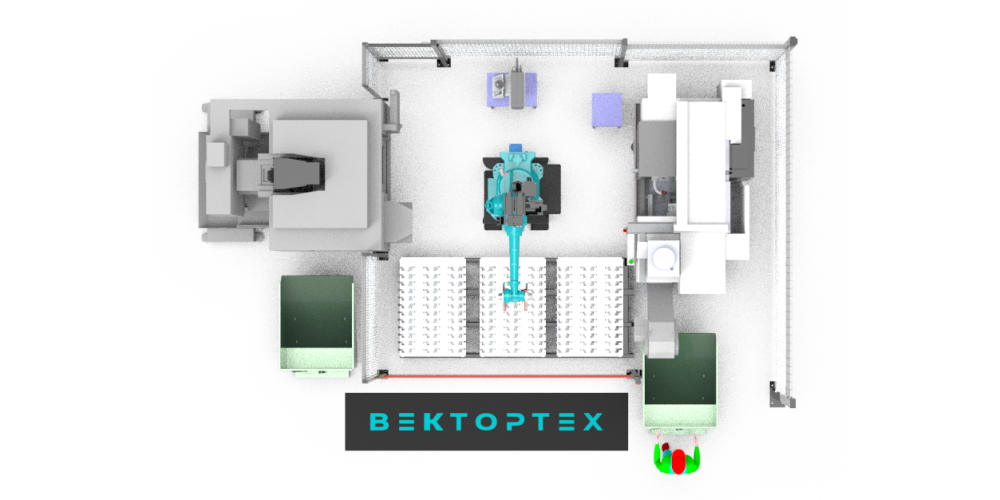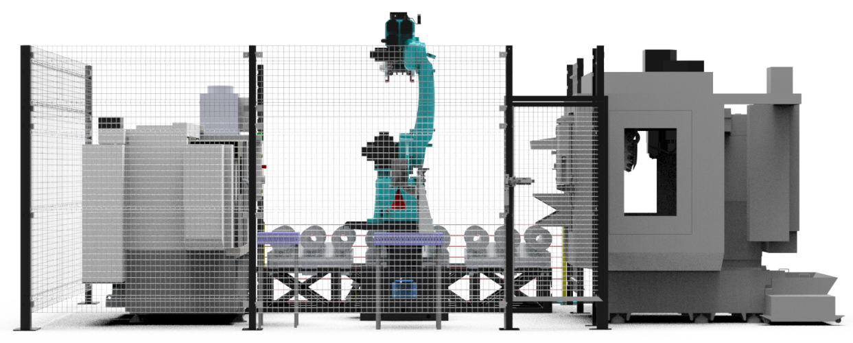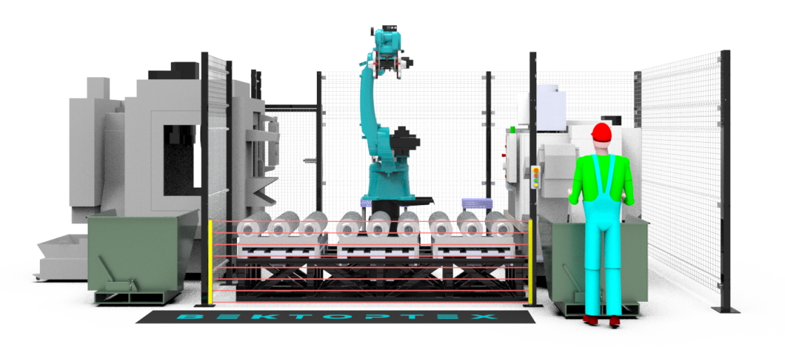 Данный комплекс предназначен для загрузки выгрузки токарно-фрезерной группы станков. Параллельное расположение позволяет получить замкнутый цикл выпуска изделий от заготовки до промаркированного изделия. Быстрая смена паллет позволяет не тратить время на дозагрузку, а привозить готовые паллеты сразу со склада.