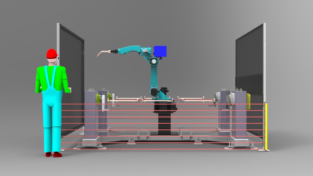 Состав комплекса:1 – Промышленный робот досягаемостью 1450мм и грузоподъемностью 6кг 2 – Зона №1 одноосевого сварочного позиционера грузоподъемностью 500кг 3 – Зона №2 одноосевого сварочного позиционера грузоподъемностью 500кг 4 – Световое ограждения безопасности зоны №1 5 – Световое ограждение безопасности зоны №2 6 – Ограждение безопасности 7 – Кнопочный пульт управления Данный сварочный роботизированный комплекс позволяет сваривать заготовки габаритами 1500х600. Единая металлическая база имеет неоспоримое преимущество, если необходима более быстрая переналадка комплекса. |