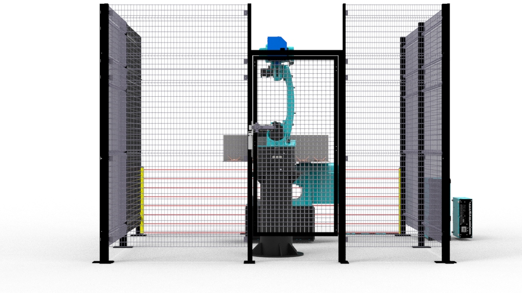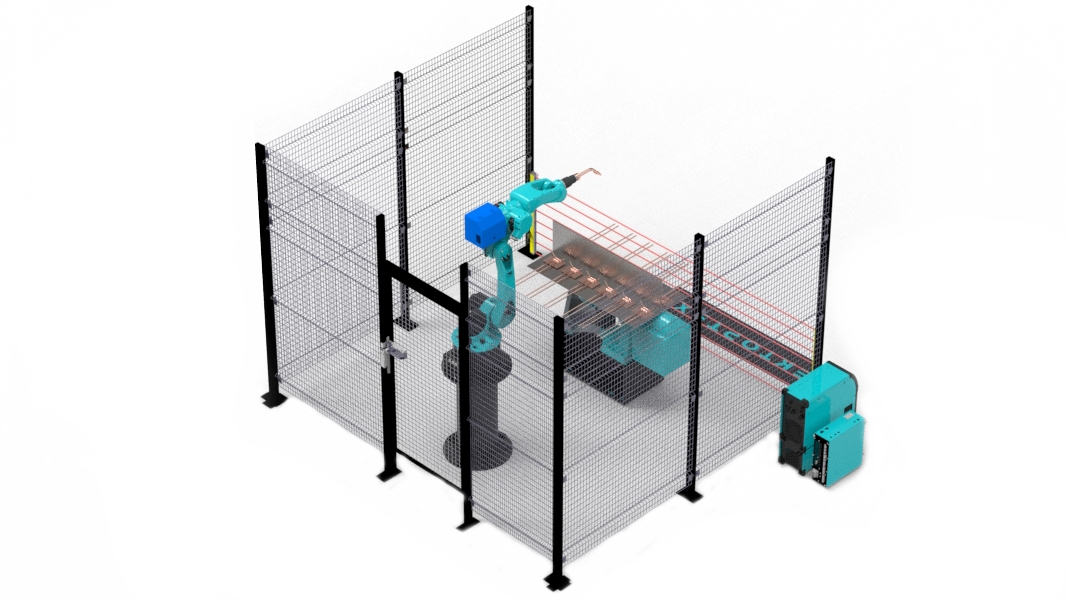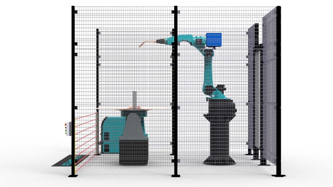 Состав комплекса:1 – Промышленный робот досягаемостью 1450мм и грузоподъемностью 6кг 2 – Поворотный стол с двумя рабочими областями суммарной грузоподъемностью 500кг 3 – Световое ограждения безопасности рабочей зоны 4 – Кнопочный пульт управления 5 – Сетчатое ограждение безопасности рабочей зоны 6 – Сварочный источник 7 – Калитка безопасности Данный сварочный роботизированный комплекс позволяет сваривать заготовки габаритами 1500х600. Единая металлическая база имеет неоспоримое преимущество, если необходима более быстрая переналадка комплекса. |