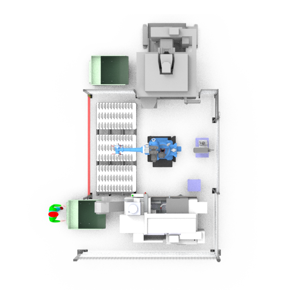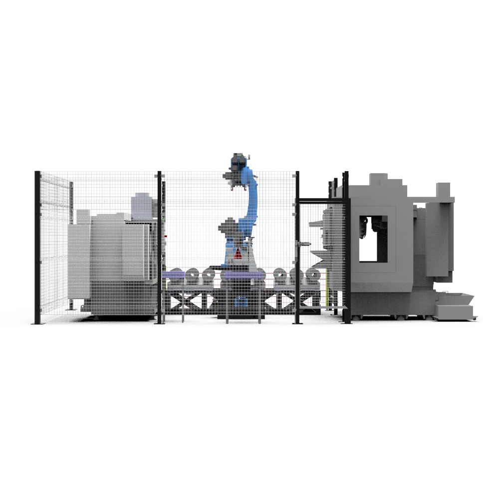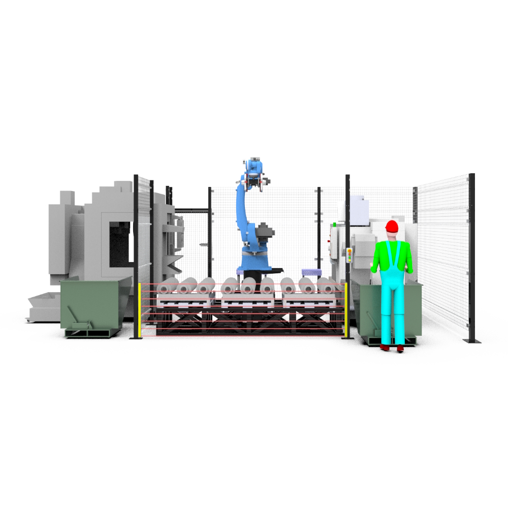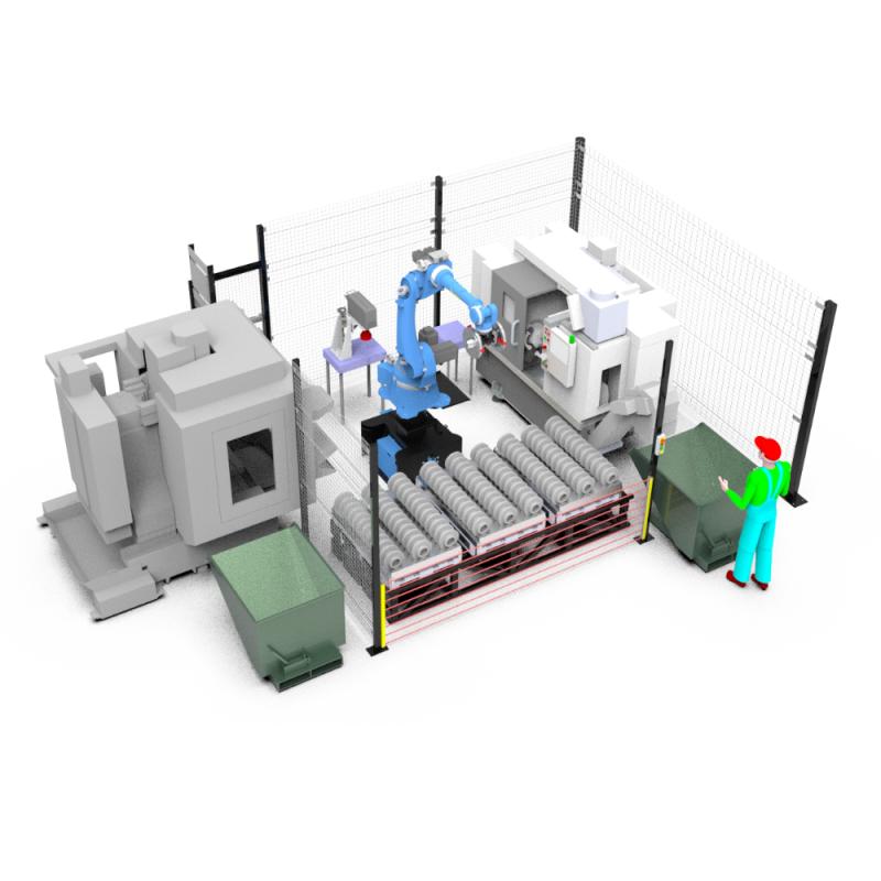Загрузка/выгрзука ЧПУ и Фрезерного станка замкнутый цикл производства. (Перпендикулярное расположение станков)