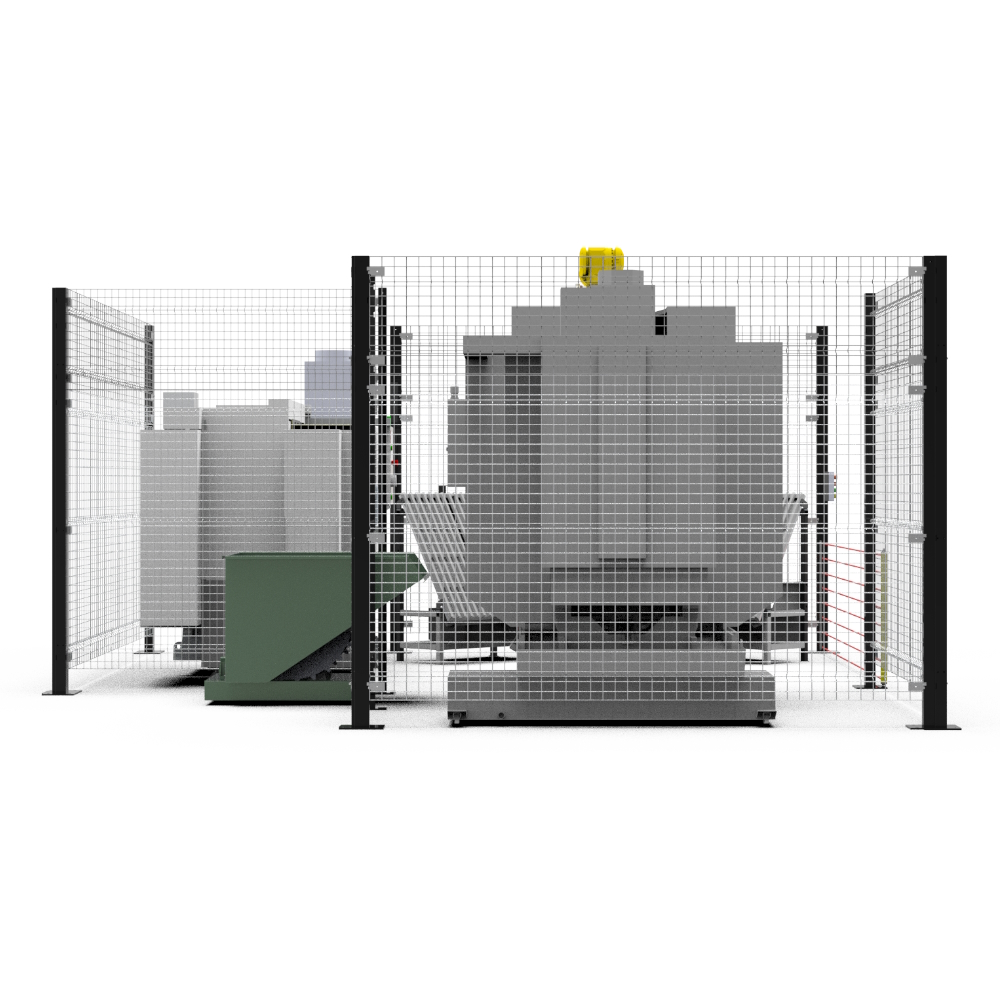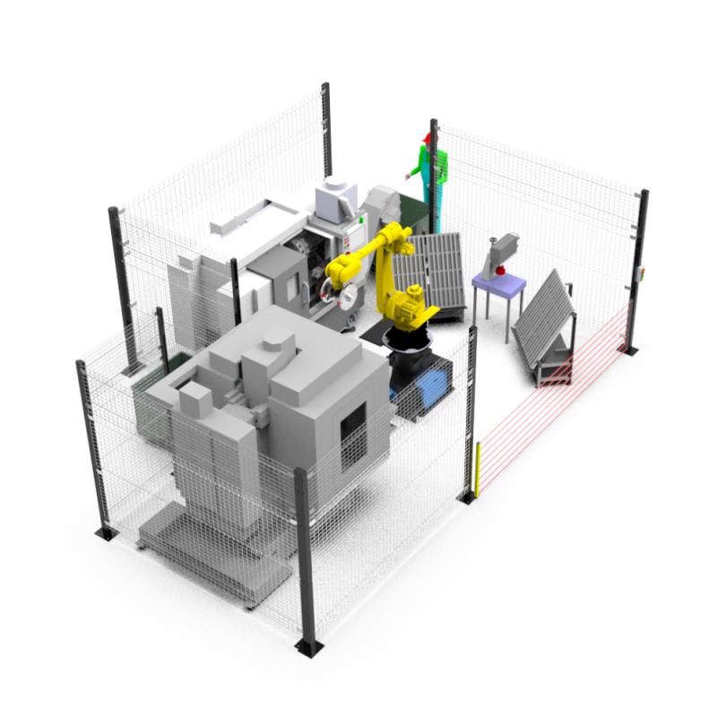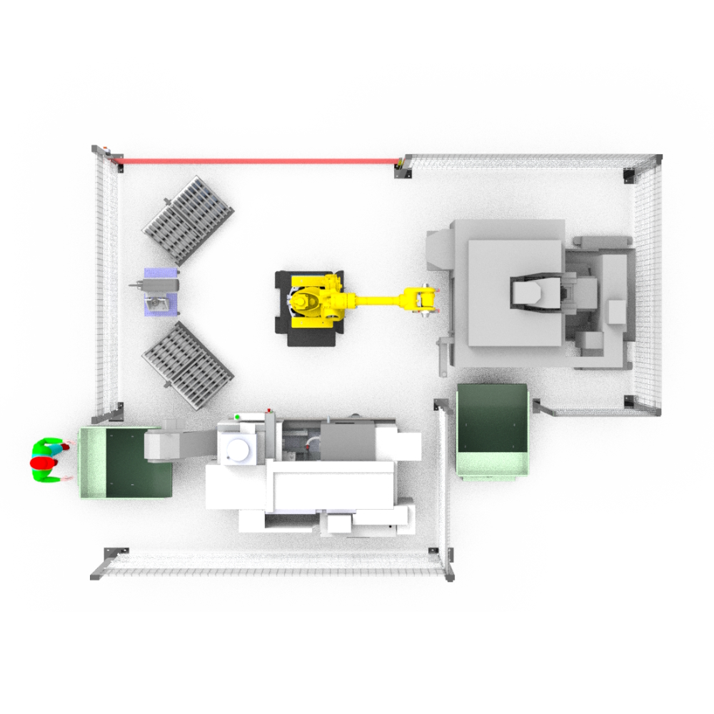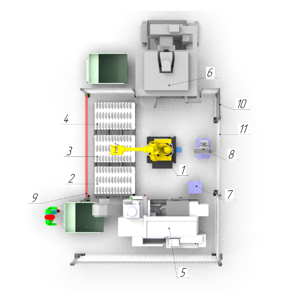 —Загрузка/выгрзука ЧПУ и Фрезерного станка замкнутый цикл производства. (Перпендикулярное расположение станков)
