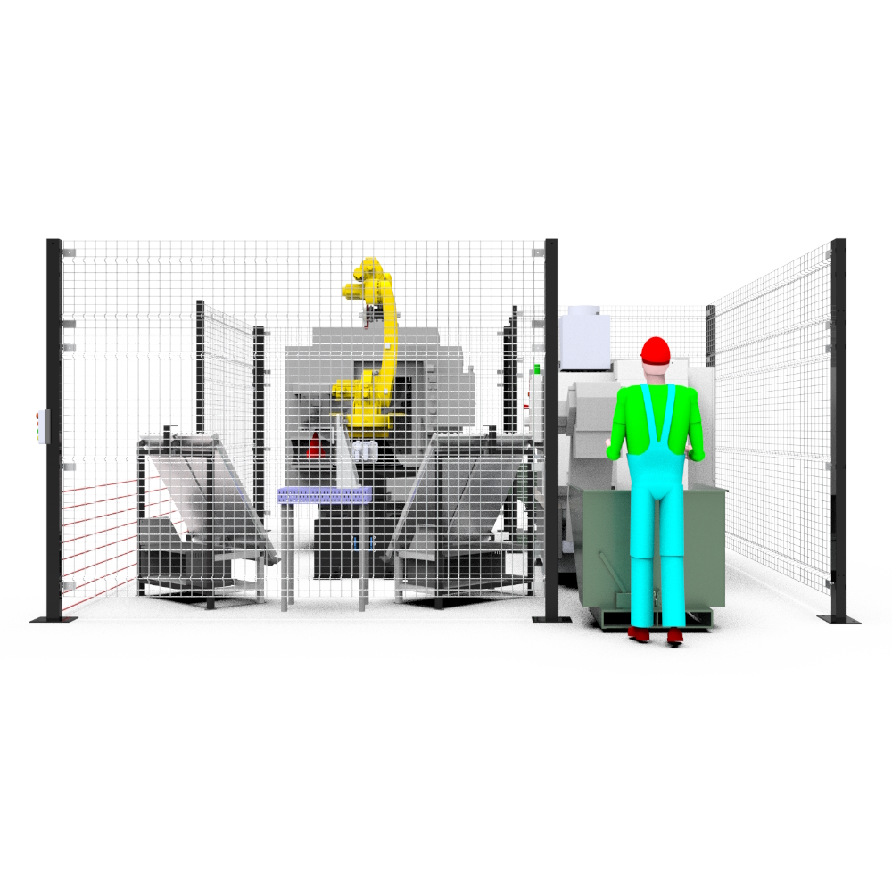 Загрузка/выгрзука ЧПУ и Фрезерного станка замкнутый цикл производства. (Перпендикулярное расположение станков)